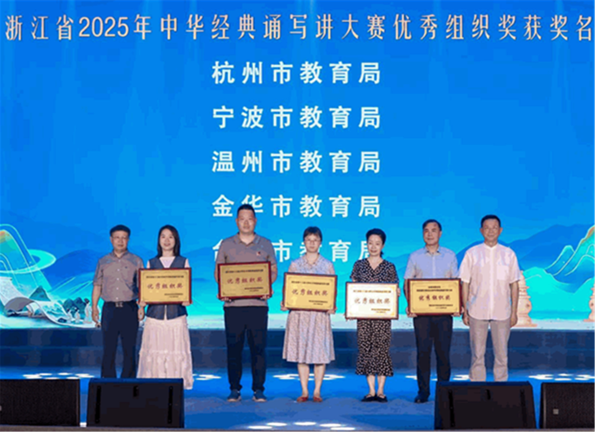 启动仪式上,杭州市教育局等5个单位获浙江省2025年中华经典诵写讲大赛优秀组织奖,浙江师范大学等19所高校获浙江省第十三届大学生中华经典诵写讲大赛优秀组织奖。